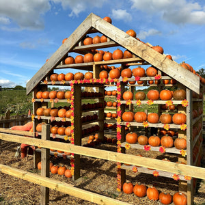 This year our farm team have planted over 160,000 pumpkins of various shapes, sizes and colours, all of which are edible as well as decorative.